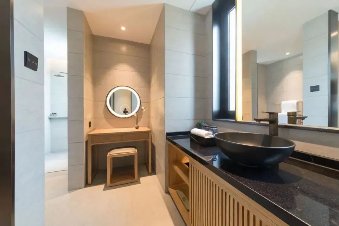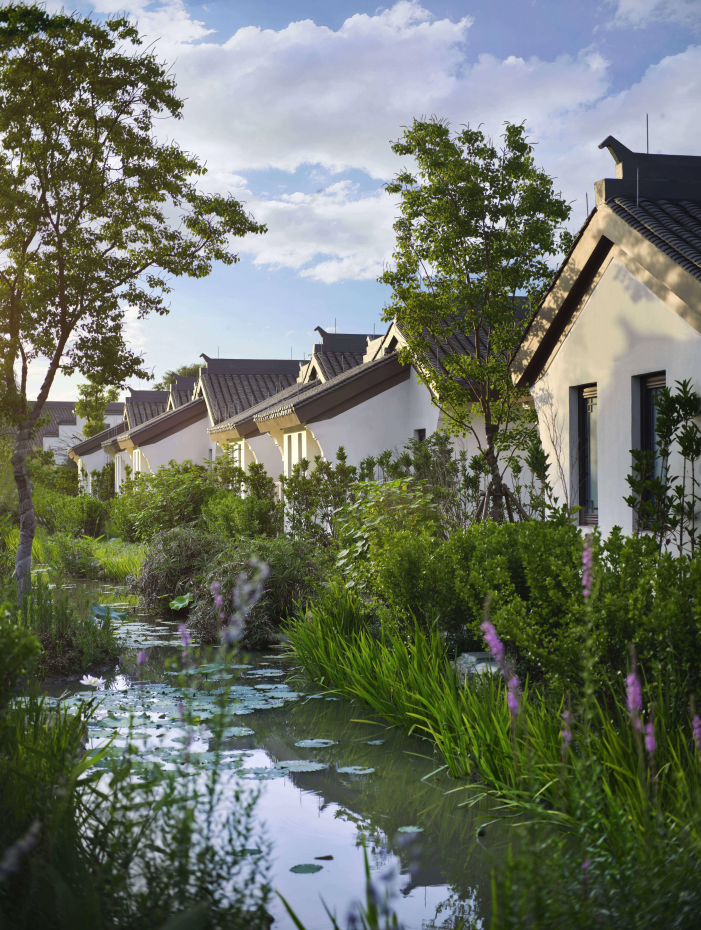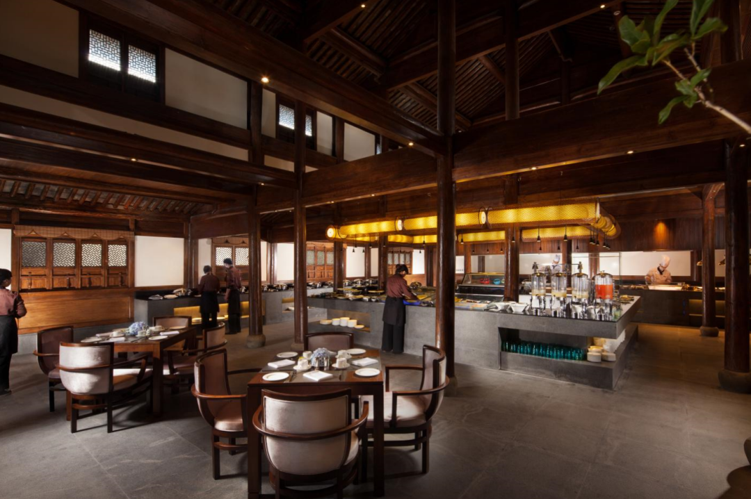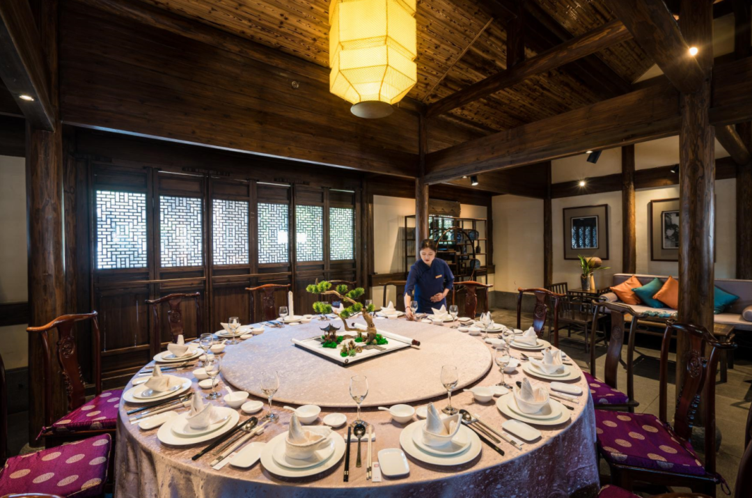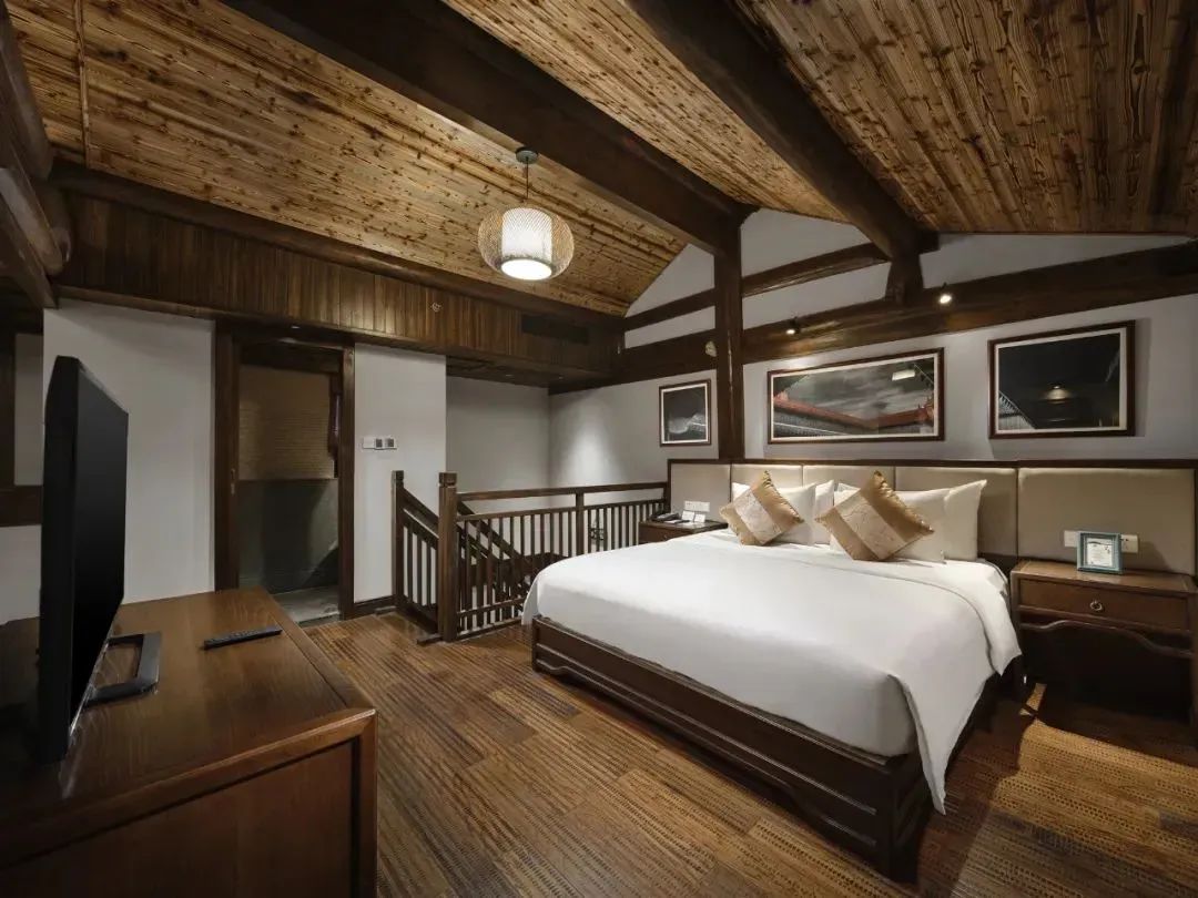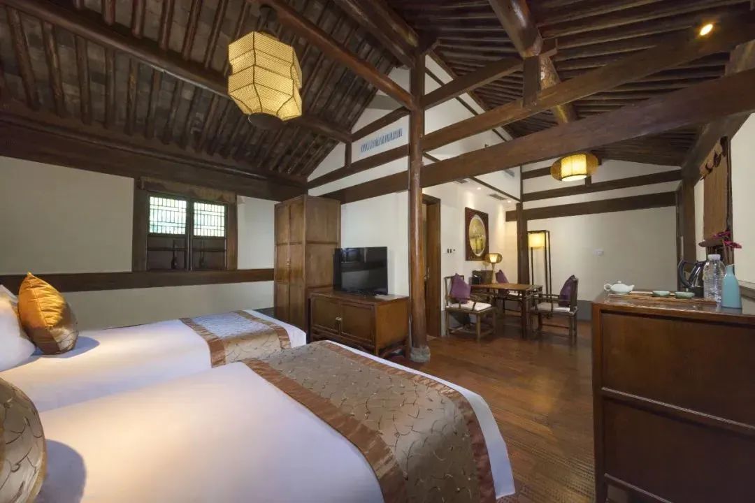 酒店佔地80000㎡,共有房型15種,一期客房以古色古香複式躍層的套房為主,二期基本都為鄰水獨棟小別墅。所有客房都散落在這片古村之間,每間房都坐享怡人風景。