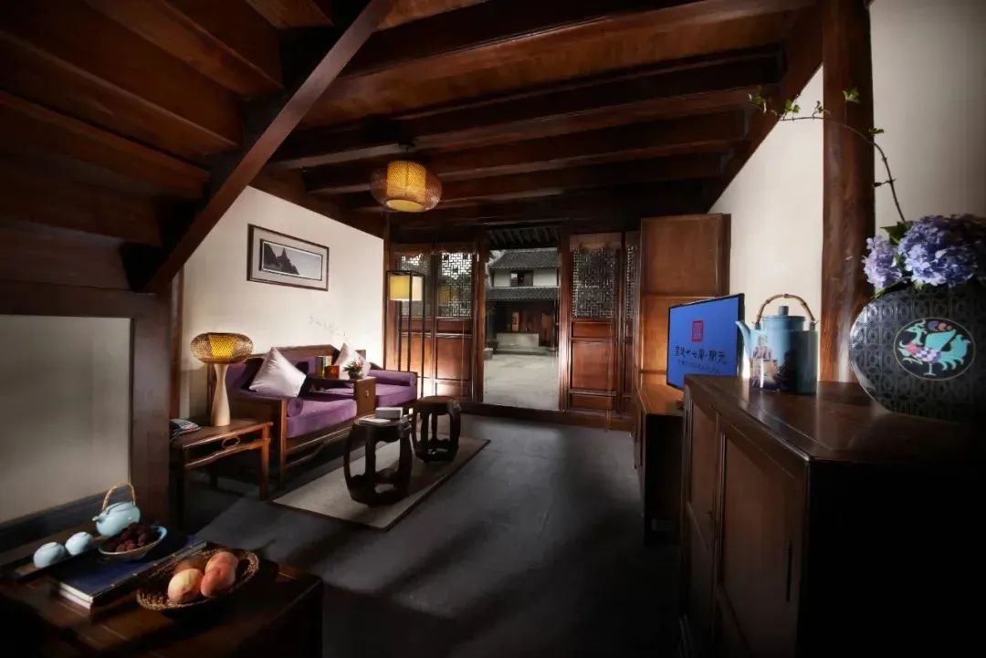 酒店不僅保持了古建築原本的風貌,還加以大宅院的生活環境作為引導,宅內有街,街中有市,市中有店,琳瑯滿目;二期別墅更是宅外有河,河邊有景,楊柳拂岸。