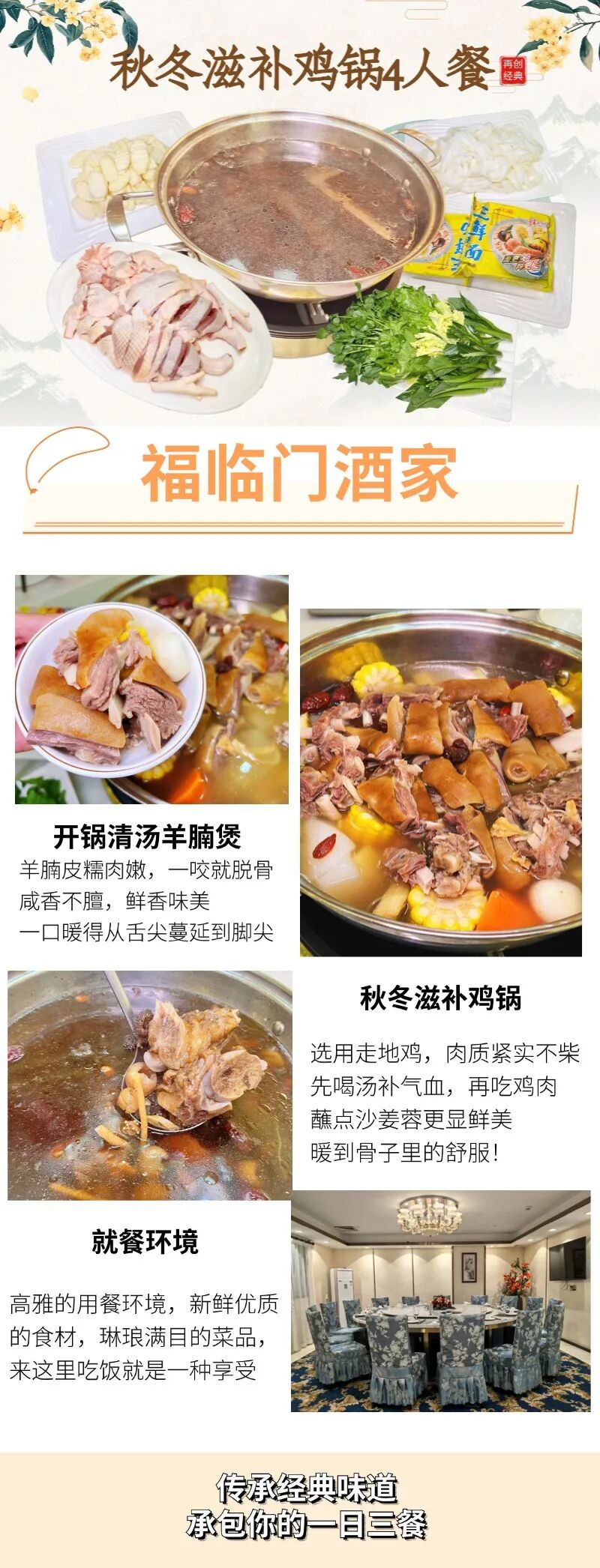 廣州福臨門酒家(開鍋清湯羊腩4人餐+秋冬滋補雞鍋4人餐含黑山羊腩/跑山土雞+蔬菜+主食+免費停車)