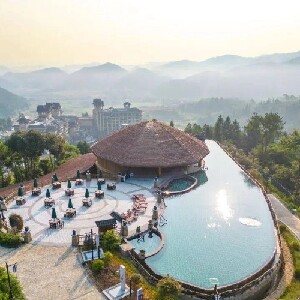 度假邨依山傍水,風光迤邐方圓幾十公裏範圍內為生態森林區林木覆蓋率高達68.8%,負氧離子含量最高可達12萬個/CM³是名副其實的天然氧吧,更是聞名遐邇的療養勝地