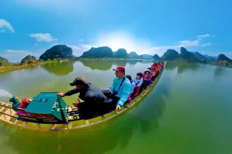 風景如畫!萬畝峰林、千畝花海,加上市奇峰溶洞與 “飛借桂林山,漓江換明逕,遊廊迎奇景,簪峰鎮九龍” 的美稱,生態獨特。(網紅小火車自理)
