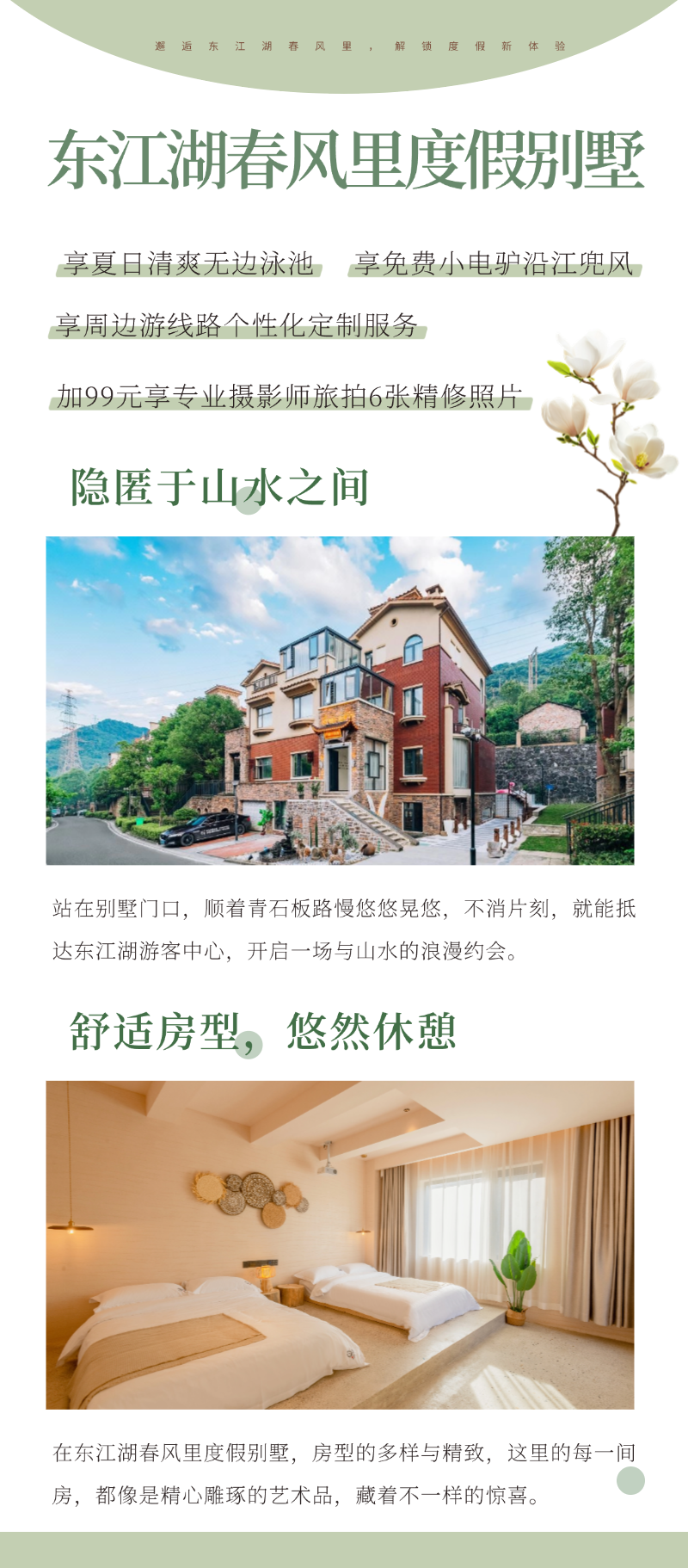 郴州市東江湖春風裏度假別墅山景房(大床/雙床任選)(全屋智能+露臺無邊泳池+免費小電驢騎行+步行3分鐘到東江湖景區門口)