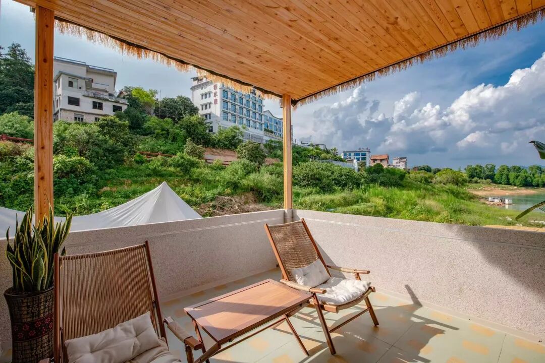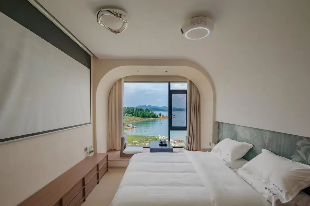 民宿擁有多種房型,每一種都獨具特色,讓人眼前一亮 。房間內的布置溫馨而浪漫 。柔軟舒適的床正對著巨大的落地窗,透過窗戶,東江湖的美景盡收眼底 。