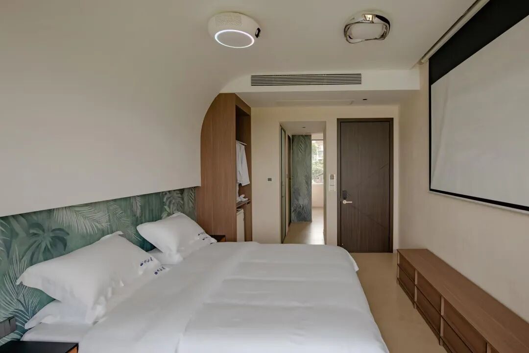 酒店客房結合了空間設計、生活美學,將現代時尚與中國傳統文化融入其中,於細節處透露巧妙構思,兼顧愜意與私密,最大程度地體現客房的空間感,極盡呈現中式旅居生活方式。