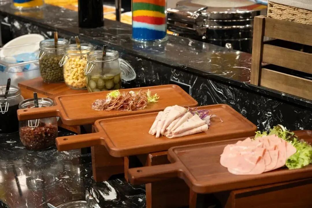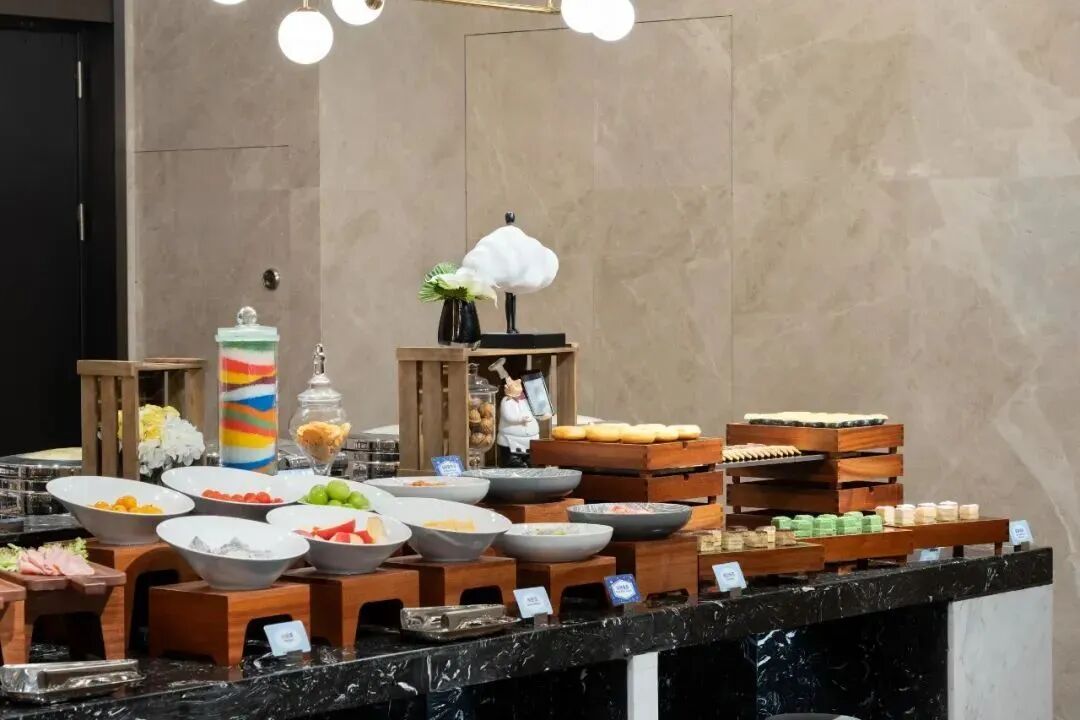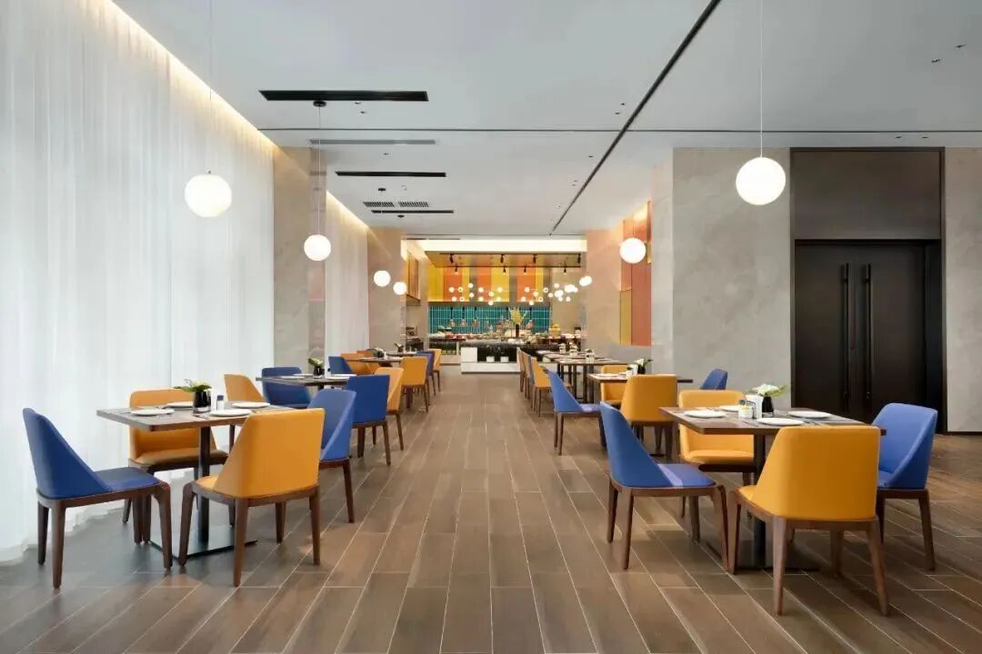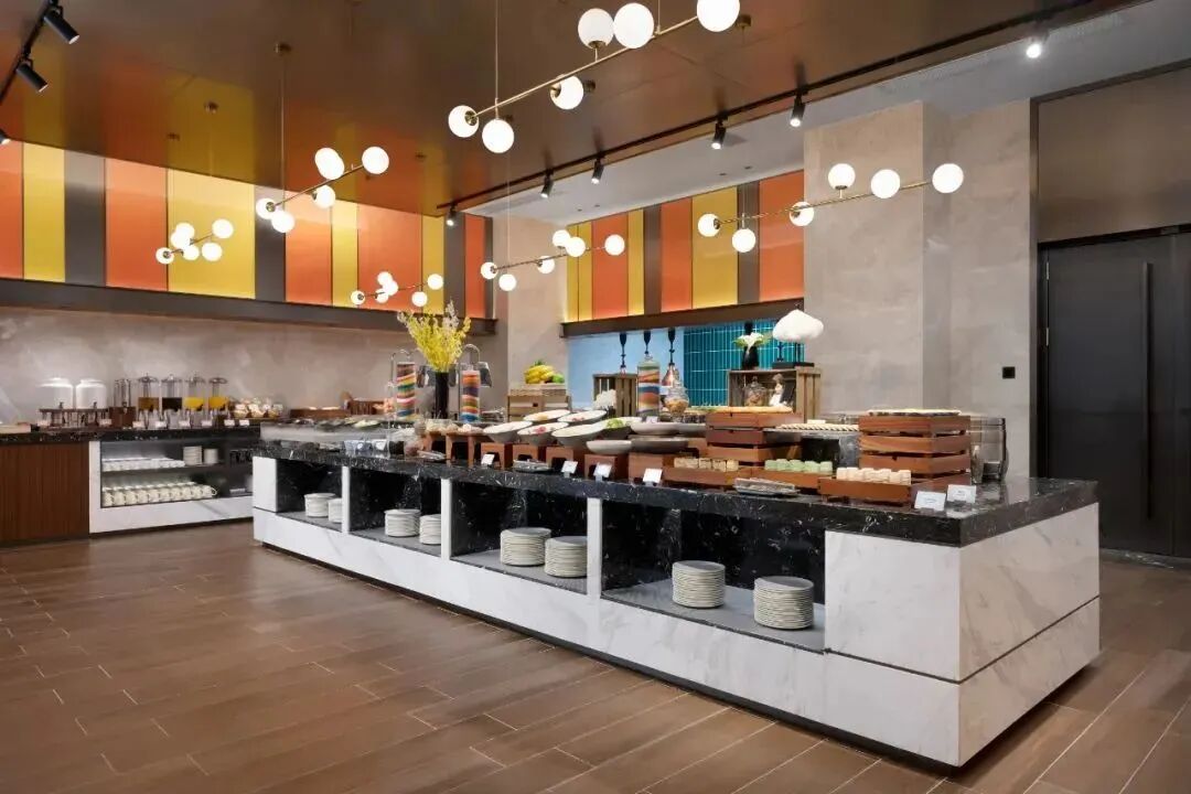 歡朋餐廳舒適用餐區,開放式廚房,92個餐位,簡約現代的環境 、上百個品種的新鮮營養熱早餐、種類豐富的簡餐和蔬果飲品為您全日提供高品質的健康飲食體驗,讓繁忙的旅途增添一份歡愉和安心。