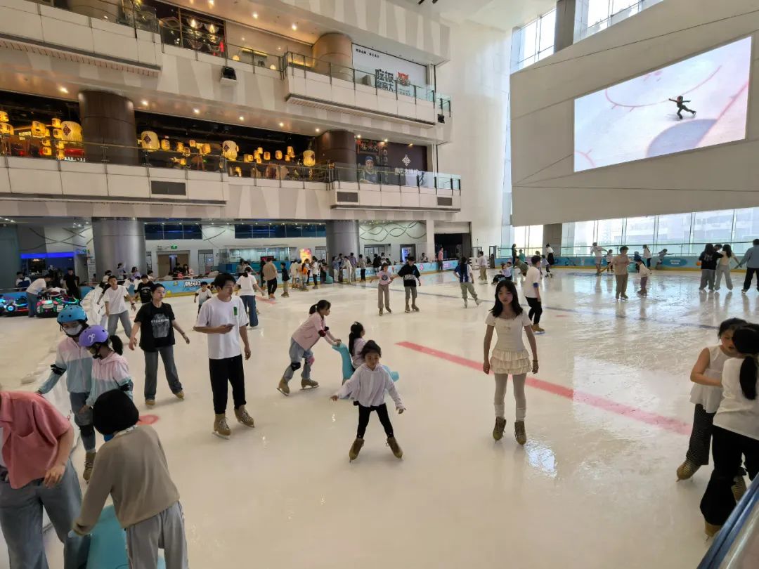 冰紛萬象滑冰場位於鄭州萬象城場所夠大,面積有800平米玩累了還可以去大商城內吃吃喝喝補充能量呢!