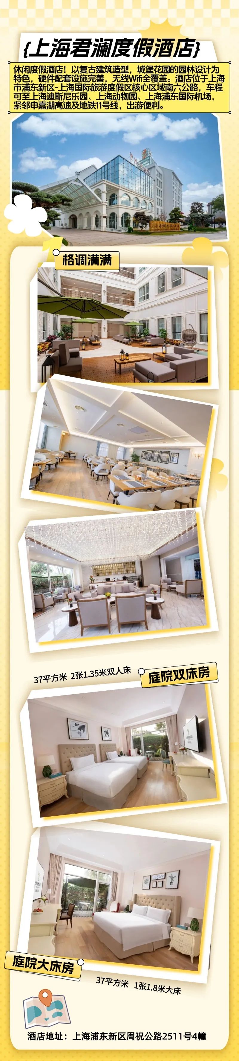 (2) 套餐包含2晚酒店住宿,預訂默認第一晚入住官方上海玩具總動員酒店,第二晚入住週邊5鉆酒店