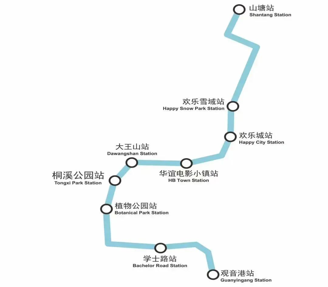 全長8.256km,設站9座,車輛段1座(位於山塘遊客集散中心內)