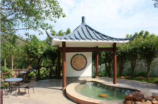 康橋養生區風格自然、古樸以高溫中藥池為主