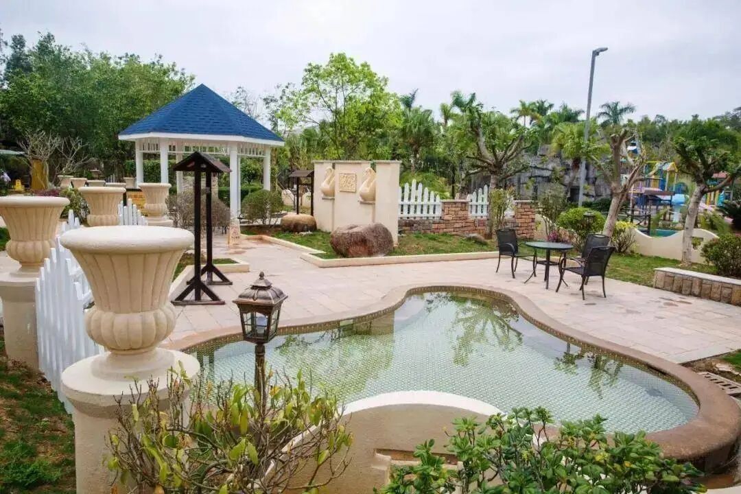 酒店地處臺山市白沙鎮朗南銅鑼地村週圍自然環境優美,空氣清新度假村北面為現存的自然村莊東南面為連綿環繞的青翠山丘晶瑩剔透的溫泉水靜靜流淌而過