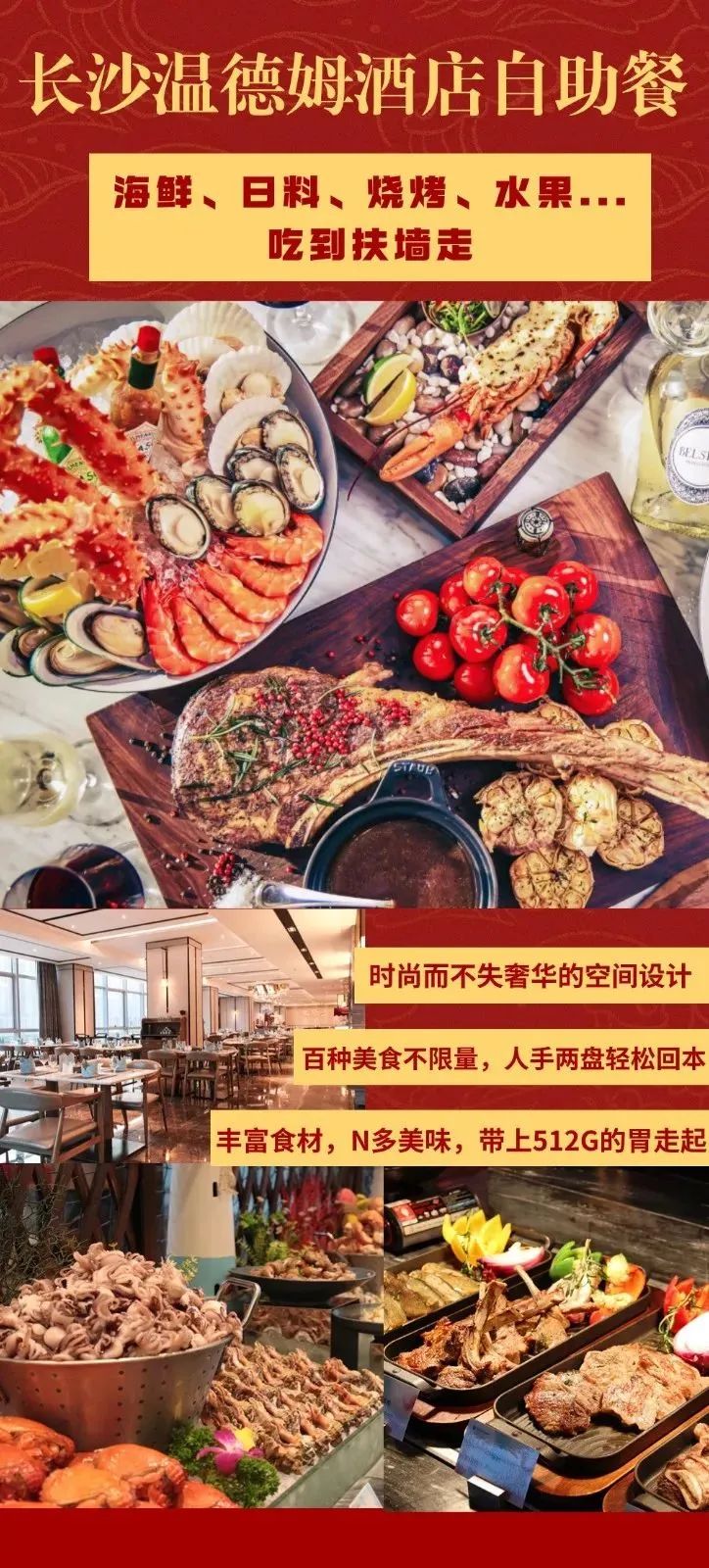 嚟長沙玩揀咗溫德姆嘅自助餐真係冇揾錯!環境超正,星級感滿分,雪蟹腿新鮮到爆汁,哈...