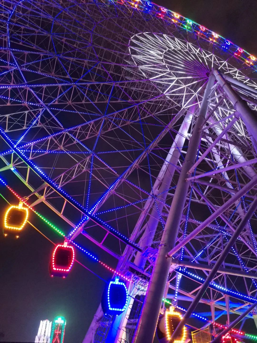 隨著摩天輪的緩緩升高,從高處可以俯瞰整個遊樂場,仿佛伸手就能觸摸到藍天;傍晚仿佛一伸手就能觸摸到夕陽。