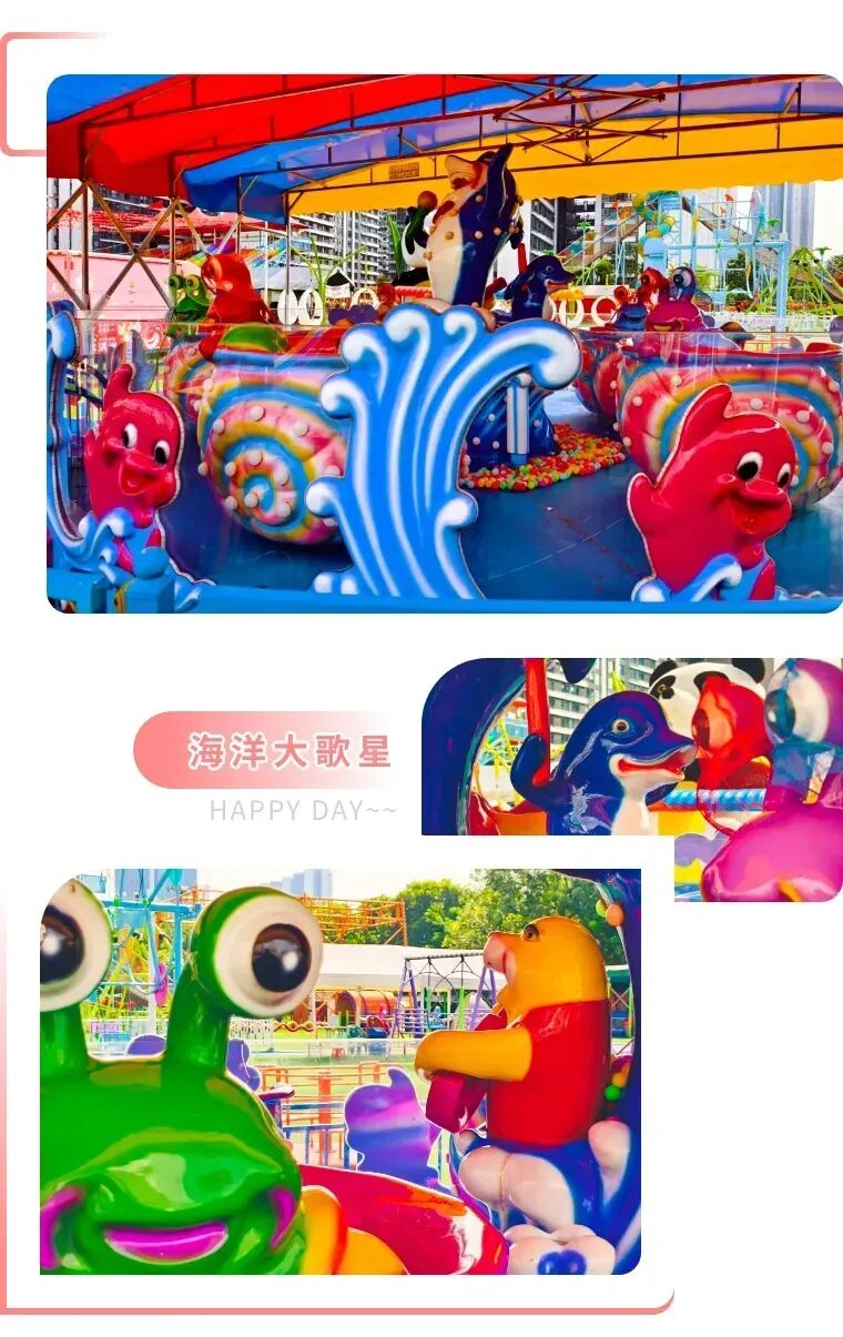解鎖更多精彩摩天輪、空中飛人、熊貓蹺蹺板、火山攀巖、海盜船、蜻蜓點水、飛碟轉盤、快樂蕩椅......