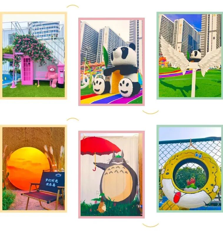 精心佈置各種打卡場景巨型熊貓拱門、網紅櫻花樹聖潔天使之翼、手繪動漫塗鴉萌兔藝術輪胎、温馨許願牆打卡 拍照 許願,開啓奇妙夢幻之旅手機記得充滿電喔~