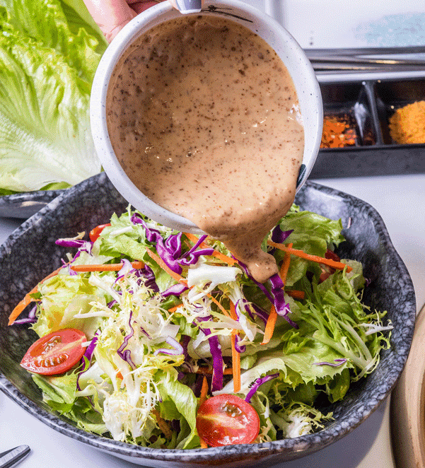如果覺得不夠飽,那牛肉石鍋拌飯一定是讓你感到美味又飽腹的存在~色彩鮮豔的石鍋拌飯碗裏裝着豐富的食材,有葷有素,還有特質的醬汁佐飯,真是口口都美味~