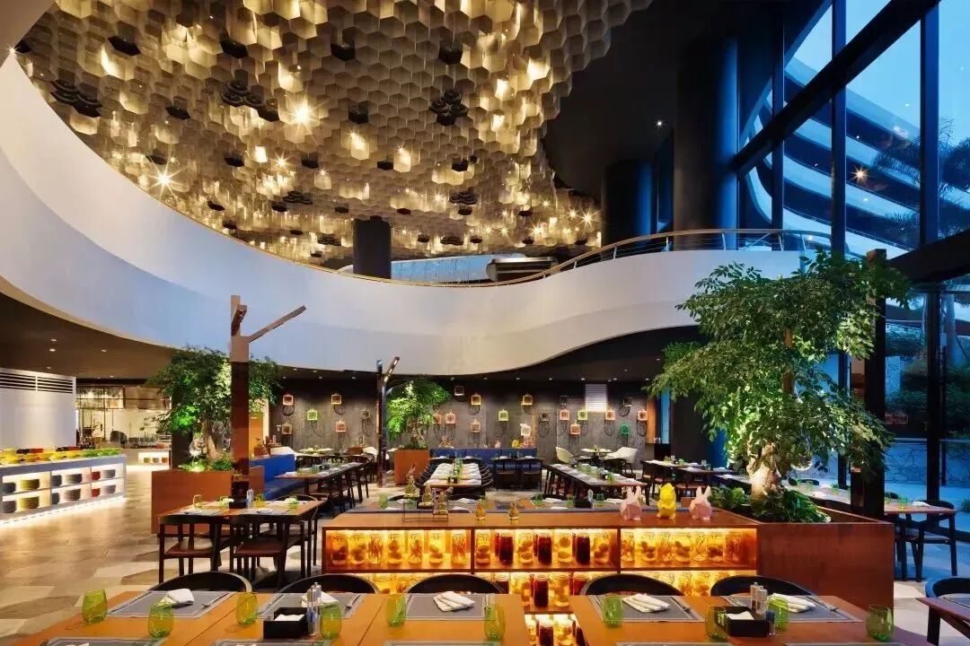 味覺與感官的同步昇華 【花苑全日制餐廳】擁有亞熱帶園林景觀和無邊際泳池帶來清新自然的用餐體驗來自不用的國家及本地的時令海鮮精選各類新鮮到貨的牛羊排,現場烤制更有多款精緻的壽司、甜品帶給你一次難忘的南沙美食之旅