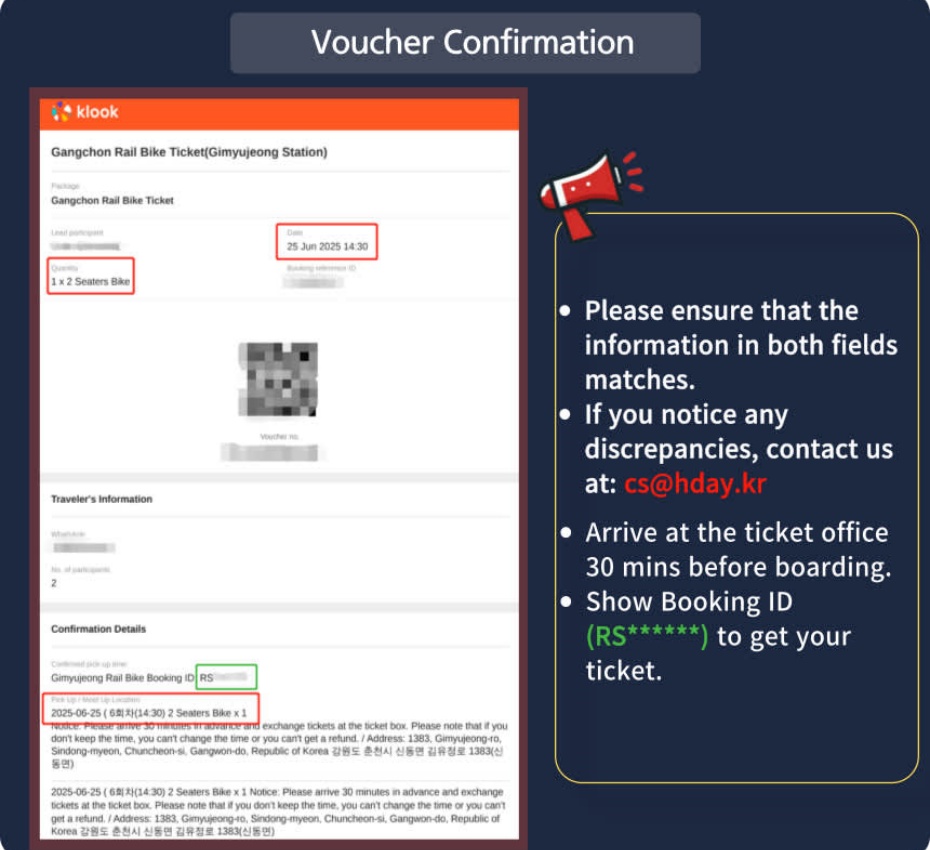 (3)須於登船前30分鐘抵達售票處,憑預訂編號RS******換領實體門票;