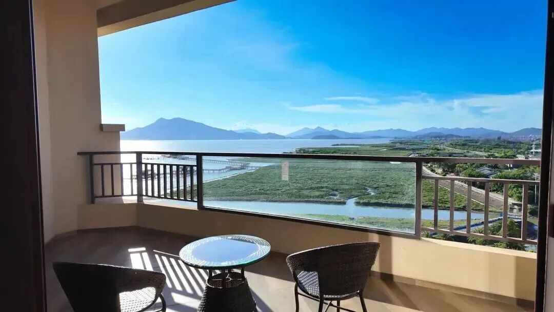 這次來惠東玩選這間真的沒錯!雅緻海景房的空間很夠,亞麻牀品超舒服,陽台能看到部分...