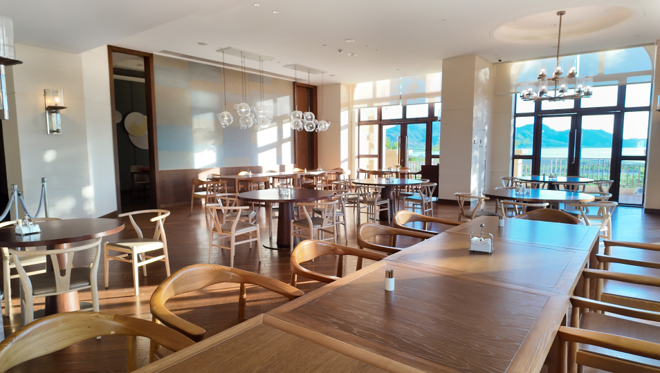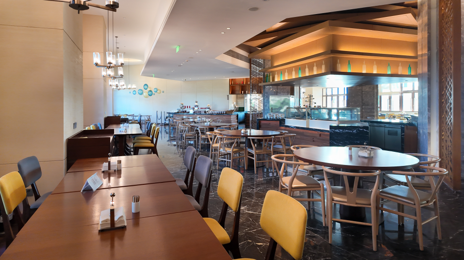 坐擁海灣全景,提供豐盛的自助餐及中式或西式菜餚零點服務 ;户外平台亦可欣賞到十分靚麗的夕陽美景。