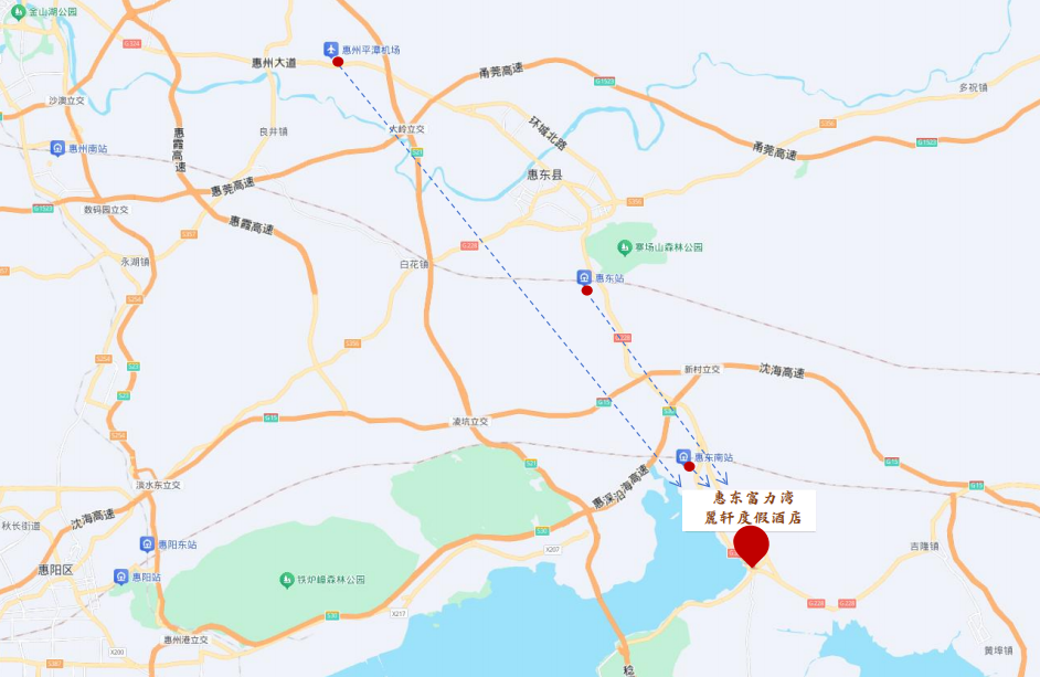 距惠東站:約20公里、20分鐘車程