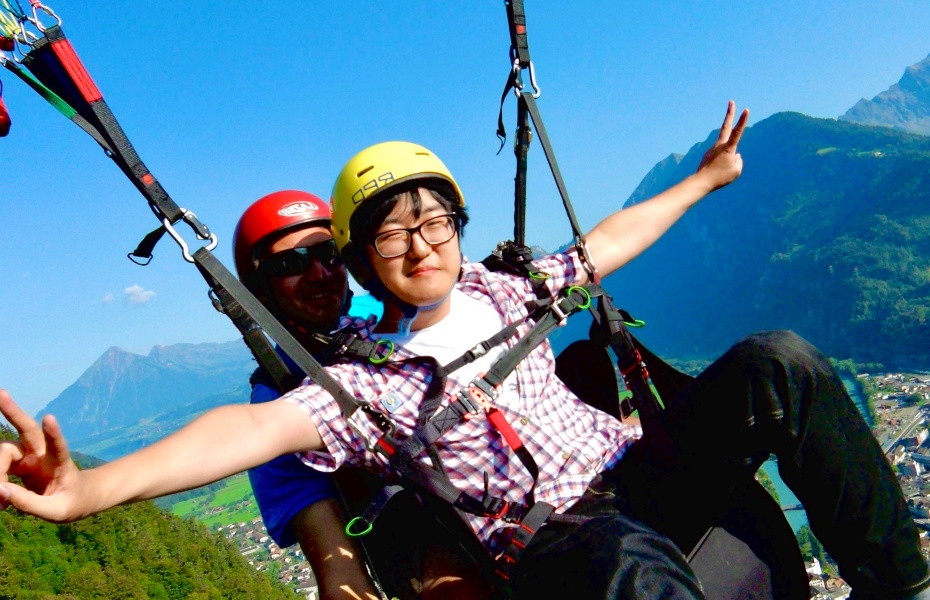 這次來因特拉肯帶10歲的兒子一起飛雙人滑翔傘,完全不用擔心!集合點找起來超方便,維...