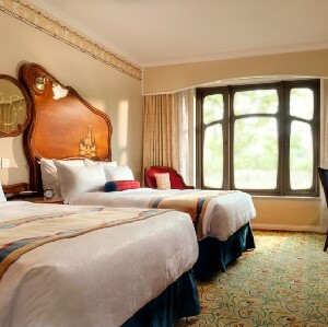 每一間客房都配備了精致的家具、貼心的服務、神奇的設施和迪士尼特備驚喜——奇妙仙子正等候著您的光臨,夢幻的魔法仙塵將在您的床頭輕輕掃過,給您帶來別樣的妙趣體驗。在此之上,您還可以加購不同主題的特色房間布置,如美女與野獸、冰雪奇緣、米奇米妮等,其中包括床品、拖鞋和各類紀念品,增添奇妙住房體驗。