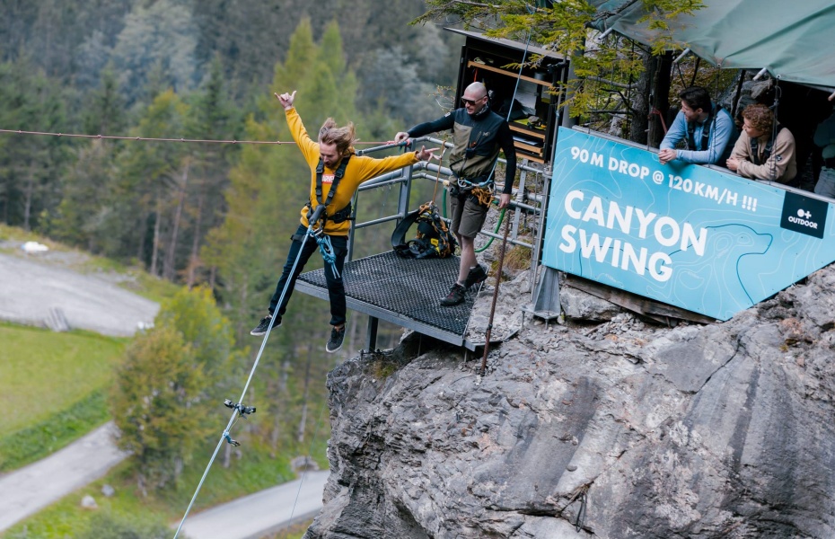 在擺盪過程中,鞦韆時速可達 120 公里,驚人的速度帶來強烈的衝擊感,遊客會在狹窄陡峭的峽谷壁之間來回擺盪,迎面而來的是壯闊的山景與奔騰的河流,腎上腺素在此刻急速飆升,每一次擺動都充滿驚喜與刺激。隨著擺動幅度逐漸減小,速度慢慢放緩,遊客會在高空之中仰望遼闊天空,俯瞰阿爾卑斯山的壯麗風光,剛才的驚險與興奮交織在一起,讓人忍不住心生再次體驗的念頭。