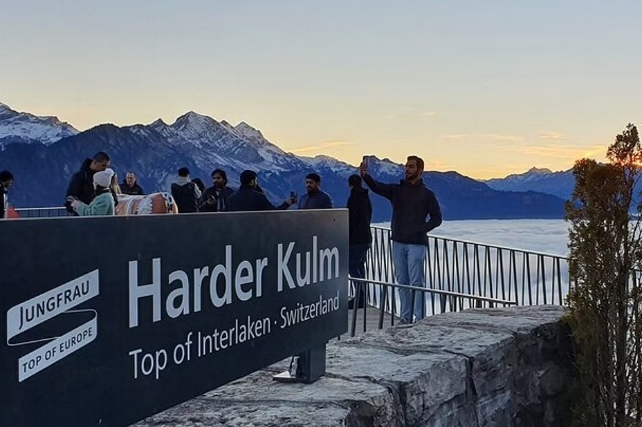 行程中最令人期待的亮點,便是搭乘刺激又舒適的纜車登上哈德山,直達素有「因特拉肯之巔」美譽的哈德昆觀景台。隨著纜車緩緩攀升,視野逐漸開闊,山下的城鎮風光、翠綠草地與連綿山林依次展開,登頂瞬間便能擁抱無死角的絕佳全景,壯麗景致盡收眼底。在專業且知識淵博的導遊帶領下,你可以近距離欣賞因特拉肯城鎮的典雅風貌,遠眺兩大湖泊的澄澈波光,更能直面雄偉壯闊的阿爾卑斯山群峰,雪山巍峨、雲霧飄渺,構成令人難以忘懷的絕美畫面。