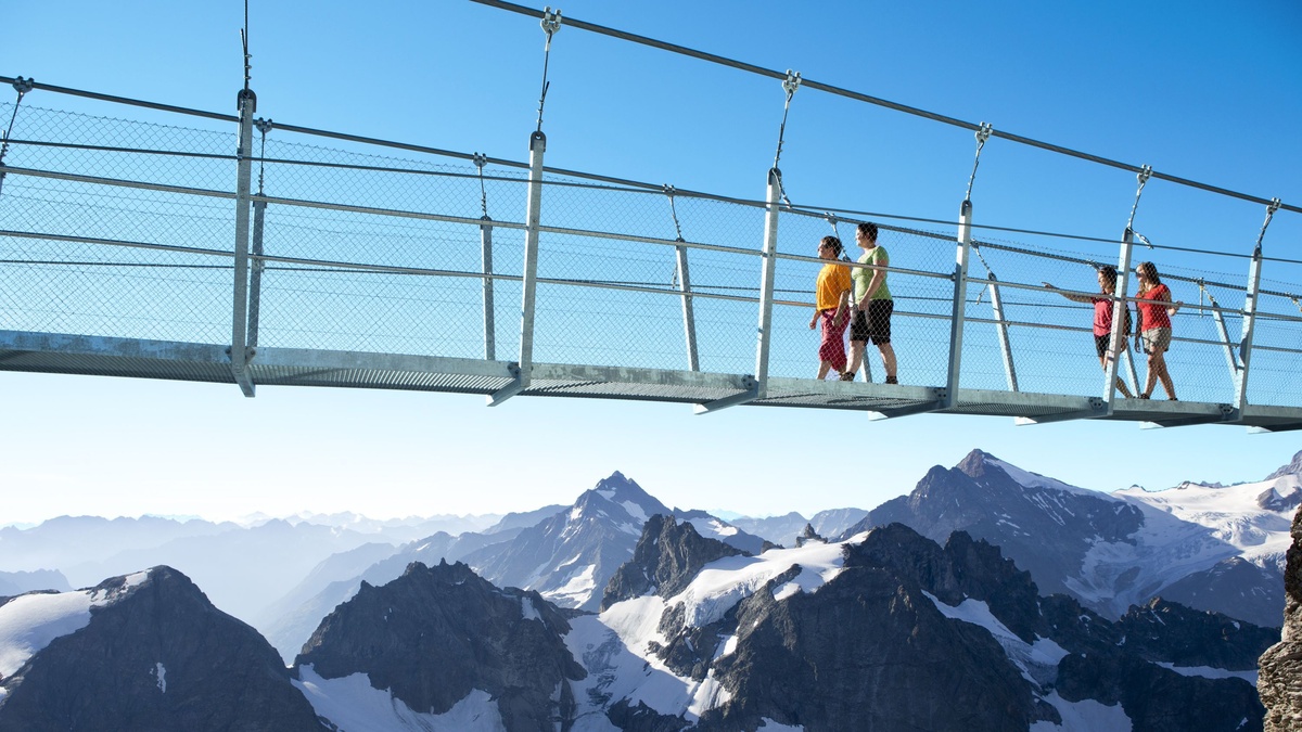 接續搭乘全球首創的旋轉纜車登頂鐵力士山,纜車緩緩旋轉三百六十度,全程無死角飽覽連綿雪峰、翠綠山谷與壯闊的阿爾卑斯群山全景,視野層次豐富,每一幕皆是震撼人心的高山畫卷。抵達山頂之後,走上歐洲海拔最高的懸崖步道鐵力士懸崖步道,凌空漫步於山巔之間,感受居高臨下的視覺震撼與刺激體驗,周邊冰川壯闊遼遠,氣勢磅礡十足。