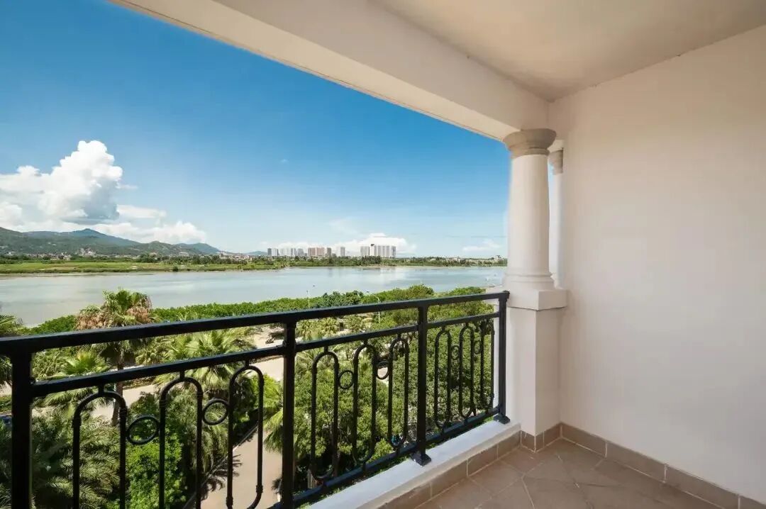 陽台視野非常寬闊,空氣清新,能夠縱覽遠山近海,水天相接的美景。白雲映照於水面,綠樹懶懶地曬着陽光,如同一幅由大自然主筆的碧藍畫卷~