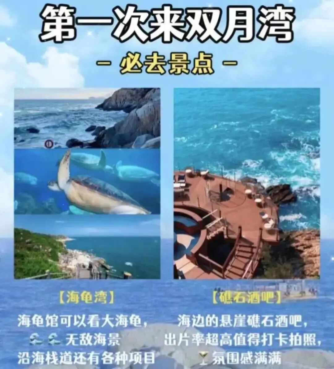 雙月灣不僅有讓你美到心醉的海景,還有各種浪漫文藝的網紅打卡地。奔赴雙月灣,來一次與大海的親密邂逅!