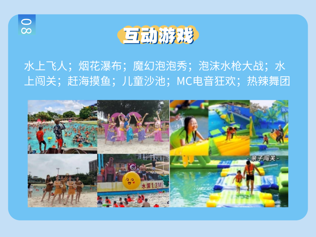 有二十多個炫酷水上項目,包括各式滑道(大的小的、長的短的),仲有精彩活動輪番上演...