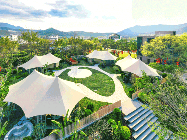 秉承綠色生態的建築設計理念通過對附近原有閒置的舊廠房、舊小學的精心改造將現代時尚的元素融入自然山水環境