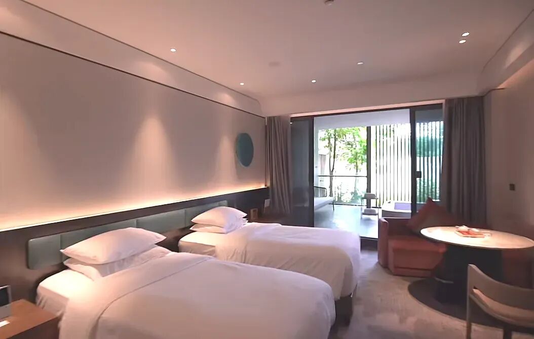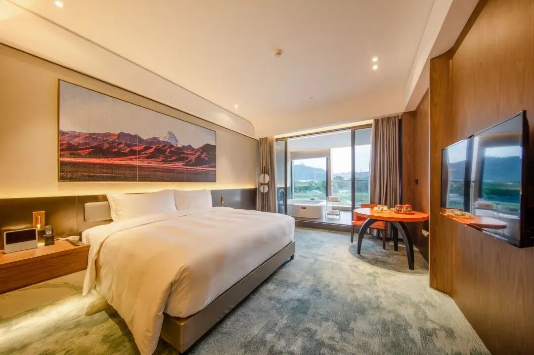 打造出100餘間豪華客房、套房還設有LOFT度假屋、LOFT家庭度假聚會別墅引入特有的珍稀含氡蘇打温泉水入户在入住之餘靜坐看遠山雲起,隨時享受泡湯泉的生活雅緻