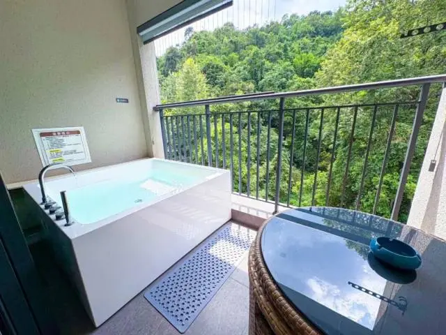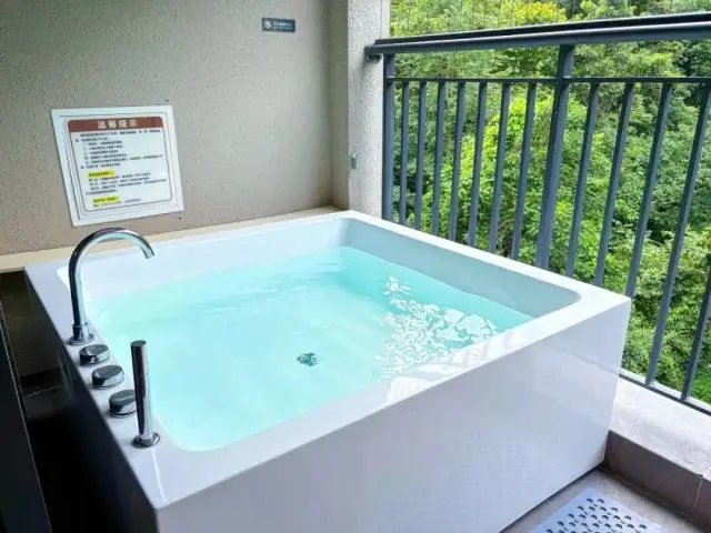 客房裏zui為精妙的設計便是這位於陽台處的泡池了。陽台泡池不僅沒有室內泡池的壓抑和沉悶,還能與陽台外的自然環境完美交互。我們既可以在這兒欣賞到遠處的景色,還能感受微風輕撫的愜意和舒適。