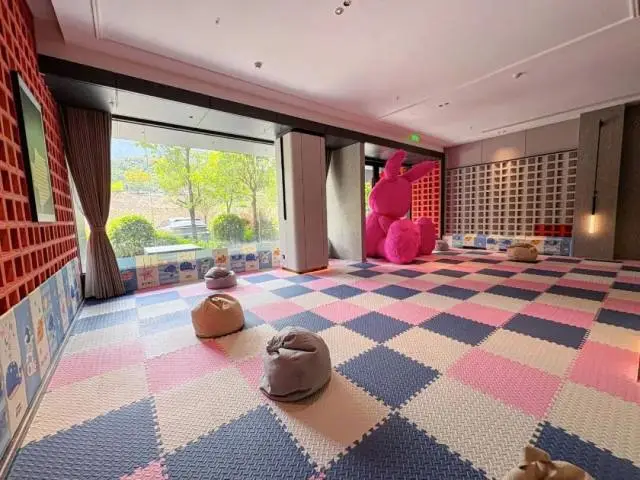 酒店配備有專門供兒童遊玩的兒童活動區,不僅有柔軟的地墊,四周牆壁上也有軟包包裹。超大型的兔子玩偶,不僅能讓孩子們歡喜不已,也能成為拍照打卡的好地方~