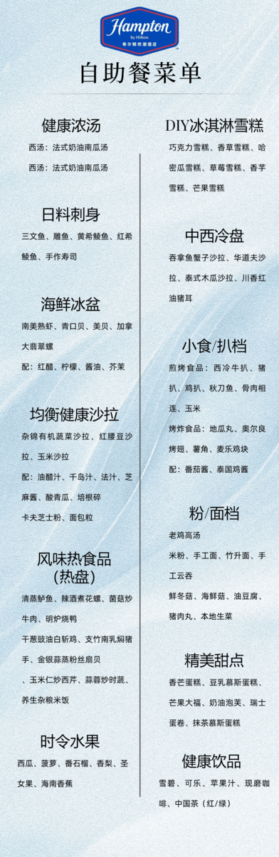 (2)為保證食材新鮮,自助晚餐部分菜品可能會根據季節做出調整,本宣傳鏈接內圖片及菜單僅供參考,具體以當天出品為準
