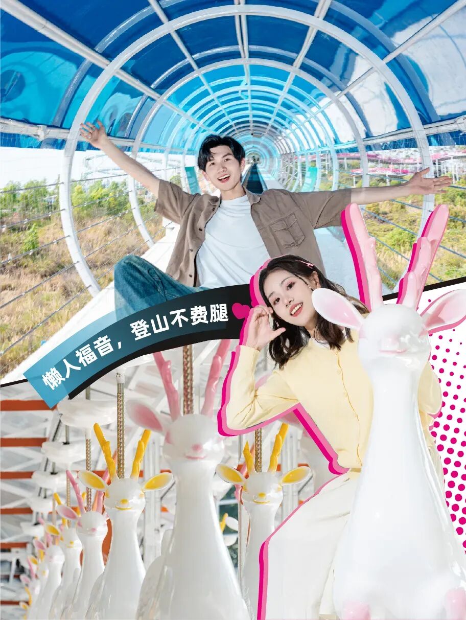 廣東首創的 “騎鹿上山” ,讓你不用費腿,就能悠然自得地欣賞山景。 坐着可愛的電動小鹿,彷彿走進了童話電影。 坐上“登山飛毯”,半山直達山頂,躺平式登山,大口吸氧,電量滿格迎接挑戰!以為這就結束了還有盈香標誌性的高空打卡地玻璃橋