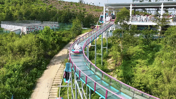 如果説飛車是陸地上的衝刺,那漂流就是空中的華爾茲,全程 1800米 的玻璃滑道