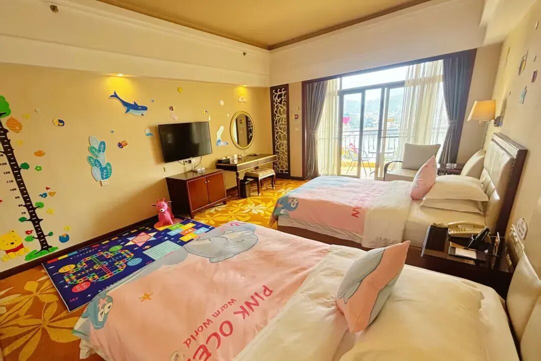 高明碧桂園鳳凰酒店入住五星級酒店酒店依山傍水,被原生態湖泊和山林環抱 。推開窗,是孔堂水庫、黎峽坪兩大天然湖泊的粼粼波光‘’深呼吸,是滿滿的負離子清新空氣。在這裏,睡個好覺是自然而然的事