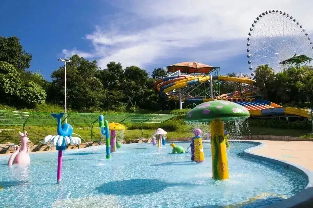 還有更多全新的水上互動項目彩色滑梯、花草植物、卡通形象、水底動物廣闊的淺水區域各式嬉水滑道蜿蜒環繞水滑梯、各種噴頭裝置、互動戲水項目融合其中