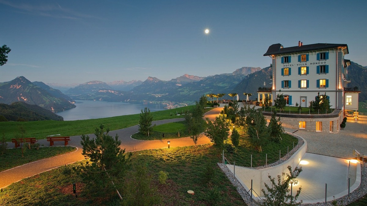 此行一大亮點,是飛抵比爾根山頂,降落在頗具盛名的霍內格別墅酒店。這座坐落於山巔的尊貴酒店擁有絕佳視野,您可在寬闊的全景露臺稍作休憩,品嘗精心製作的美味甜點,一邊享受味蕾愉悅,一邊環抱壯麗無比的阿爾卑斯山景與湖泊風光,將奢華休閒與自然美景完美融合。