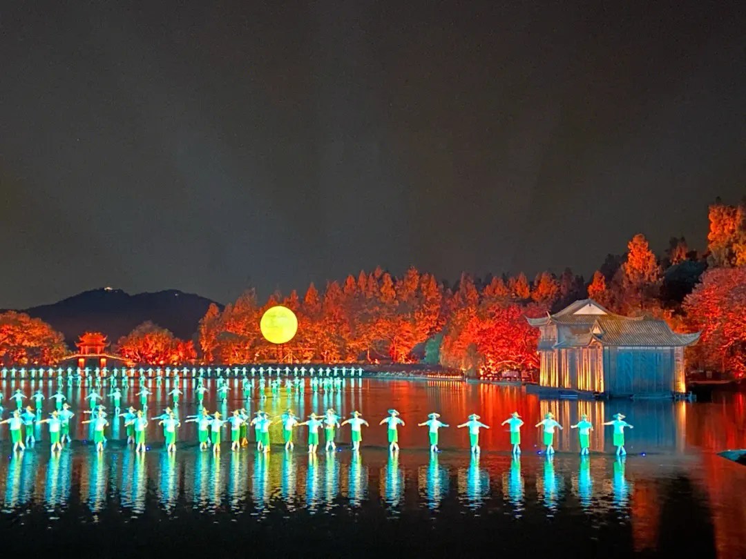 隨後前往欣賞印象西湖實景演出。此演出由知名導演張藝謀精心打造,以真實西湖為天然舞臺,以水為台、以山為景、以天為幕,運用燈光、音樂與水上表演相結合的獨特手法,全新詮釋西湖的詩意與意境,帶來耳目一新的舞臺體驗。在絢麗燈光與悠揚樂聲的交織下,觀眾可盡情享受一場震撼心靈的視覺與聽覺雙重盛宴。