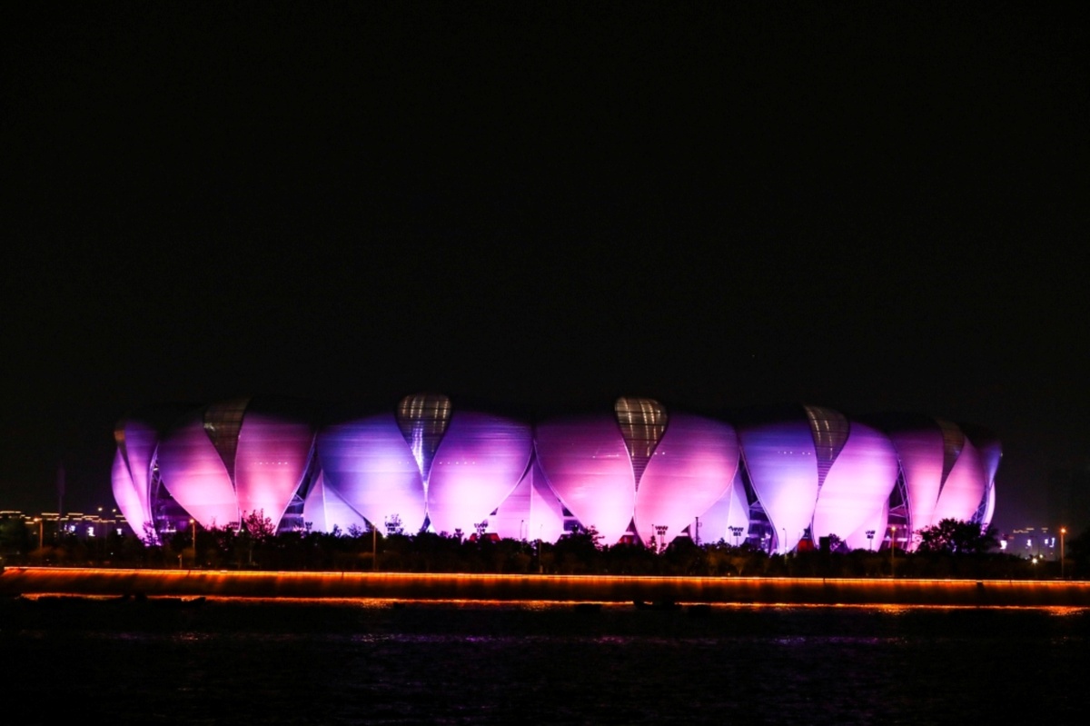 游船啟航後,首先映入眼帘的是氣勢恢宏的錢江龍雕塑,青銅鑄就的龍身蜿蜒於江邊,燈光映照下更顯騰飛之姿,仿佛守護著這片沃土。隨後,現代感十足的杭州印大樓躍入視野,樓體燈光隨著音樂節奏變換色彩,與江面倒影交疊,成為錢江新城夜景中最亮眼的符號。穿過西興大橋時,橋梁上的 LED 燈帶如銀河鋪展,光影流淌間,與船身燈光、江水波瀾構成動感畫面;遠眺奧體中心,其獨特的建築輪廓在夜色中格外醒目,當年盛會的熱烈氣息仿佛仍在江風中彌漫。錢江世紀城的超高樓群則以萬家燈火勾勒出城市天際線,與對岸的錢江新城遙相呼應,盡顯杭州的現代繁華。