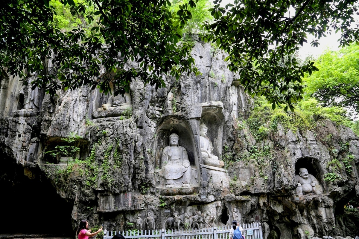⛰️ 靈隱寺飛來峰景區 飛來峰面朝靈隱寺,山體由石灰岩構成,遍佈五代至元代的佛教石窟造像,多達三百餘尊。