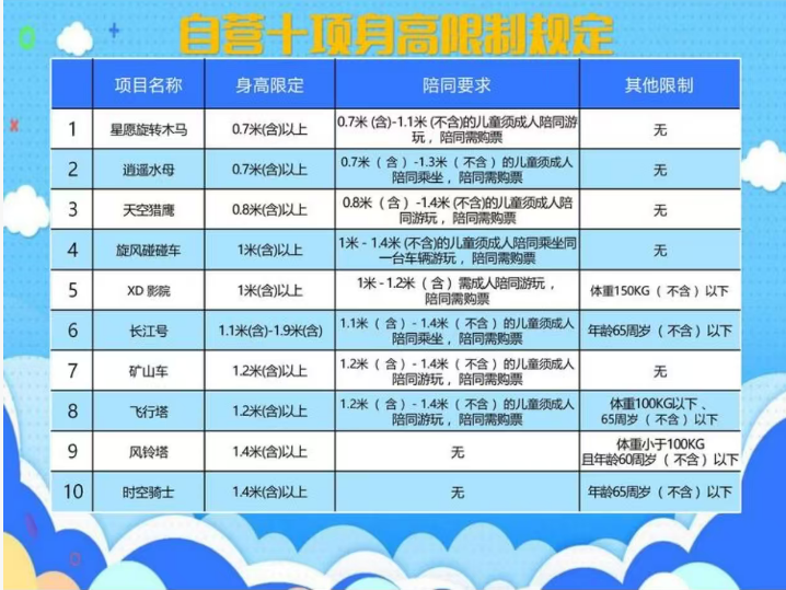 (5)園區為户外項目,受天氣等不可抗力因素影響較大,建議您出行前查看當地天氣預報,由於天氣原因、自然災害、機械檢修等原因而不能遊玩全部的項目,情況以景區公佈為準