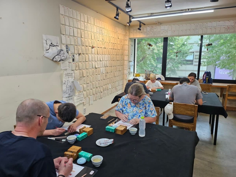 在首爾仁寺洞與貞珠一起雕刻韓國石印