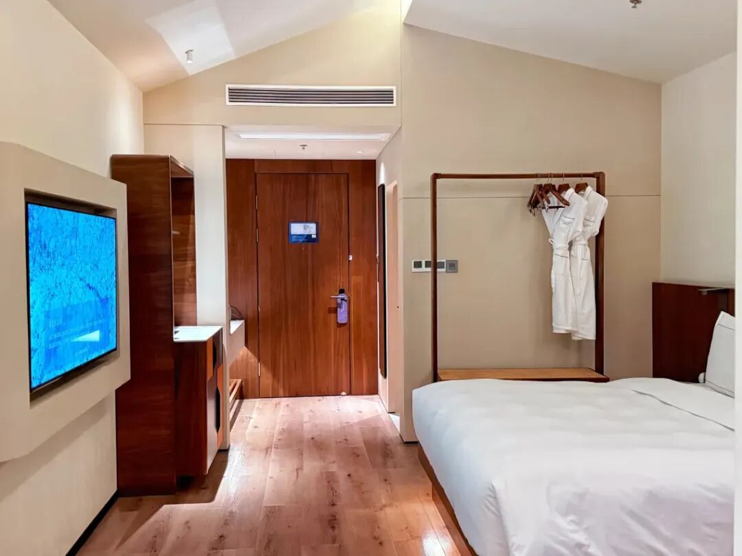 豐富娛樂設施酒店配備了24小時健身房及洗衣房,並設有棋牌室、公共泡池等齊全的設施,提供中國傳統服飾租借,極大程度上滿足旅客的多樣化和個性化需求,讓旅客在“吃、住、娛”等方面得到智能而卓越的旅居服務。