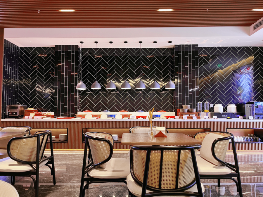 早餐精選多種中西式菜品,為賓客提供新鮮健康的選擇,超長早餐時段和打包服務,讓每位賓客都可享用美味,我們還提供來自“咖啡祖師爺”皮爺品牌的咖啡豆現磨咖啡,為您的旅途出發注滿能量。