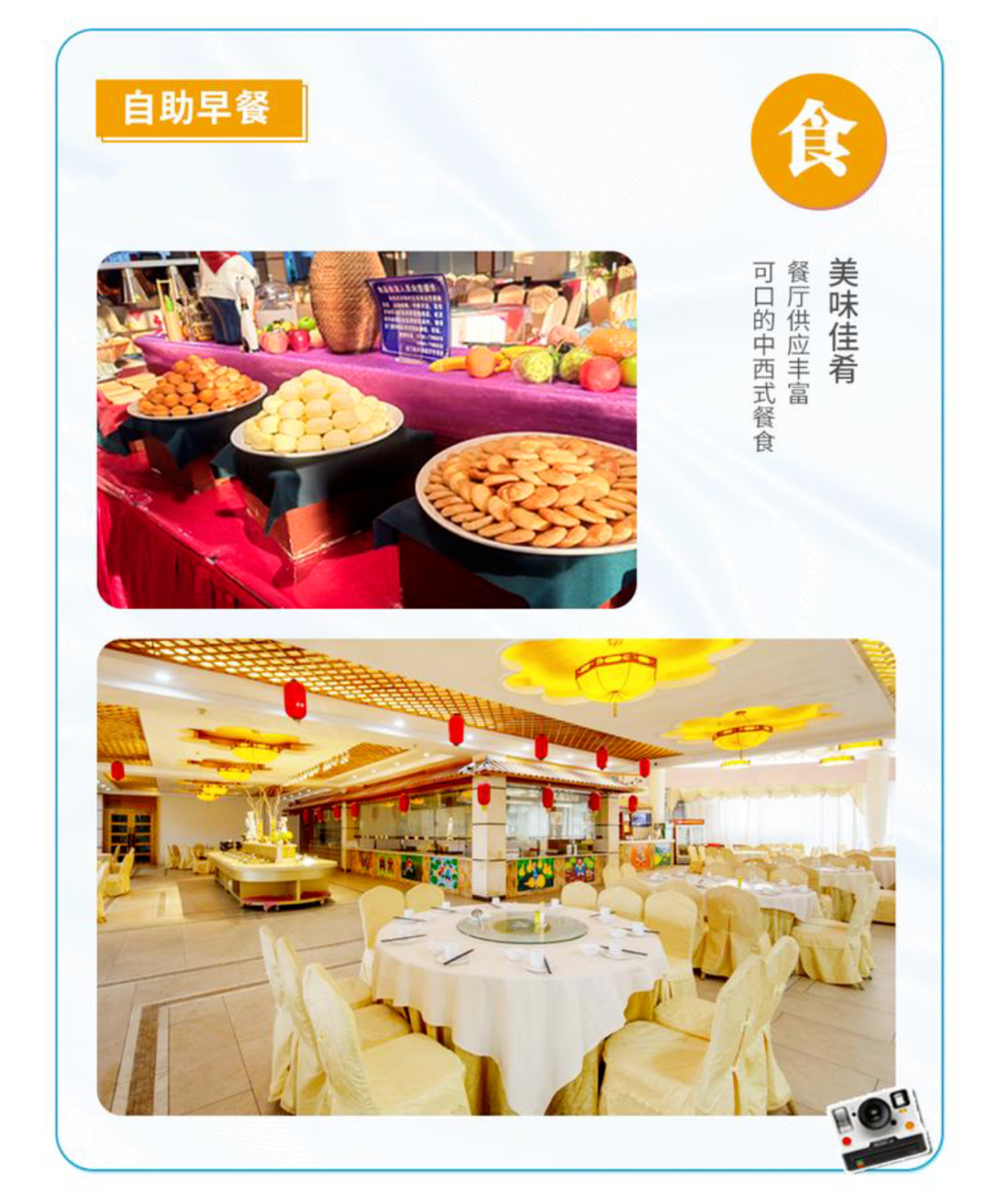 餐飲體驗:聚豐圓酒樓以廣東菜三流派之一的客家菜為主,地道的客家美食結合新·客家菜系,讓您在別具一格的餐廳環境中品嚐客家風情的美味佳餚!自助早餐位於聚豐圓農家樂,開放時間07:30-10:00。
